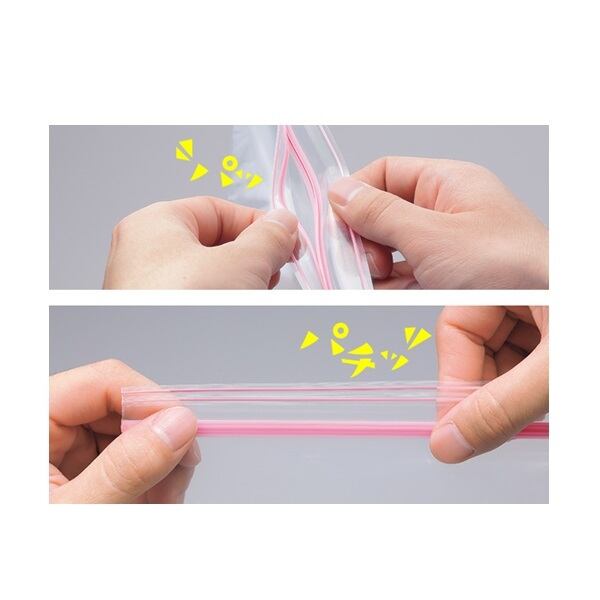 シチュエーションや内容物に合わせて「青・橙・白・緑・ピンク」の5色の中からチャックの色が選べます。